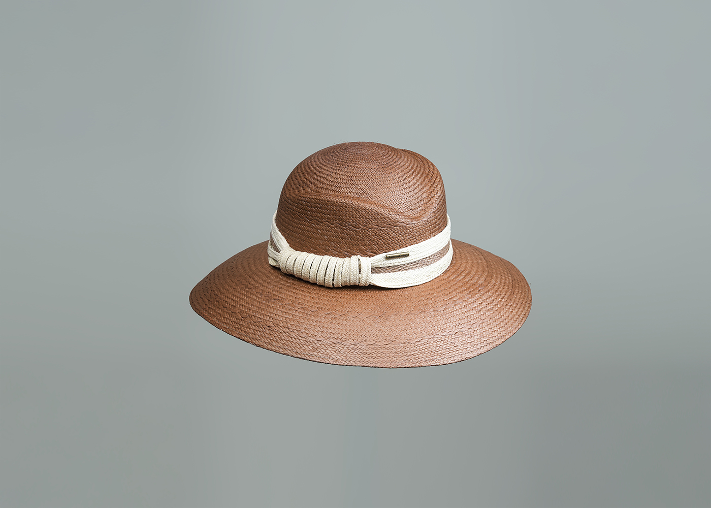 Sombrero de paja toquilla, hecho a mano en Ecuador, forma Irma, tejido espín llano, color camote.